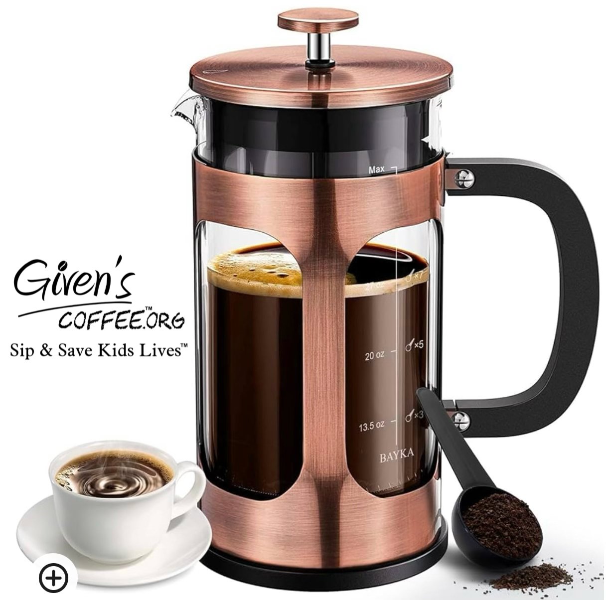BAYKA 34 Ounce 1 Liter French Press Coffee Maker, Glass Classic Copper Stainless Steel Coffee Press, Cold Brew Heat Resistant Thickened Borosilicate Coffee Pot for Camping Travel Gifts